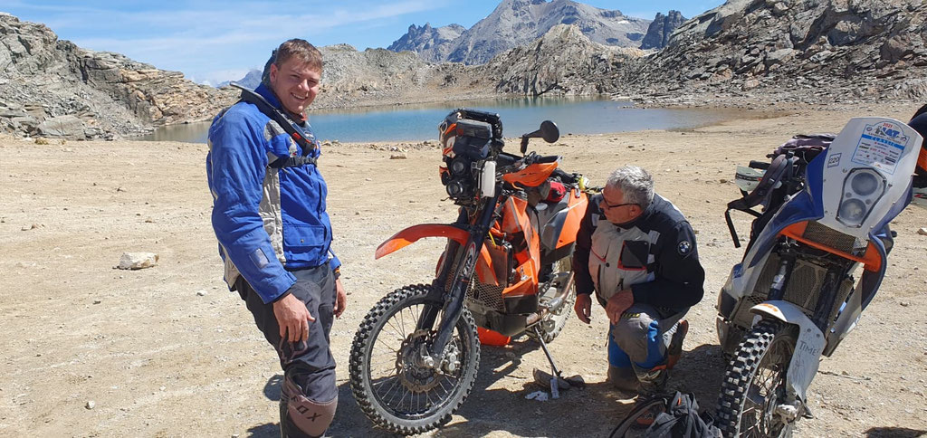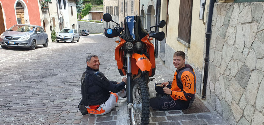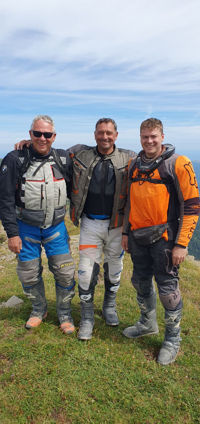 Bedankt sei wie immer pedeu für perfekten Service, Schrauberqualitäten und permanenten Ansporn. Unser zweiter Dank geht an Alex, der sich ähnlich aufmerksam immer dem Gruppenwohl widmet und einen frischen Wind in die Alt Enduroveteranen bringt.