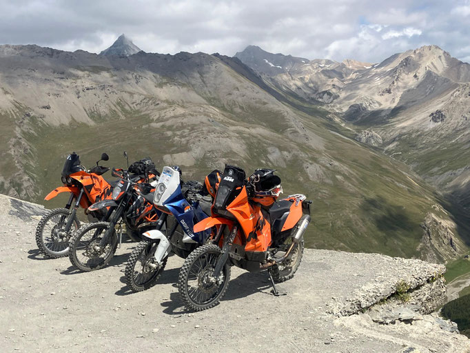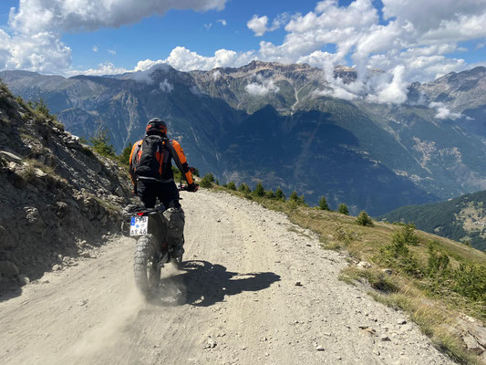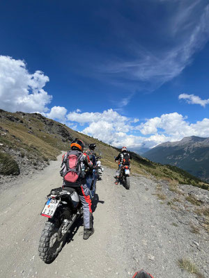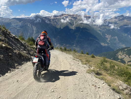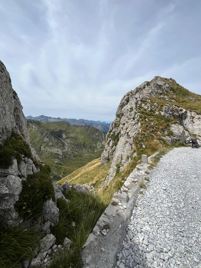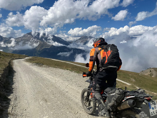 Moment!! Zu dritt ging es noch weiter auf die beiden Kammstraßen Maira-Stura und Varaita. Leider ist der Offroadteil der Maira-Stura durch das Val del Preit seit Juni 2025 dauerf´haft gesperrt worden. Trotzdem beeindruckt die Strecke am Marco Pantani-Denkmal vorbei mit grandiosen Ausblicken. Die Varaitakammstraße sind ein Teil von uns schonmal gefahren. Allerdings ohne Sicht bei Regen und durch Wolken. Diesmal hatten wir Riesenglück mit dem Wetter und wir konnten zum Abwinken Aussichten geniessen. Aber seht selbst: