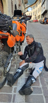 Der erste Fahrtag beginnt unspektakulär von Turin nach Oulx auf Bundesstraßen. Steigert sich dann nach dem Check in im Hotel Chez toi unweigerlich zu einem fahrerischen Leckerbissen der Extraklasse. Schraubereien inklusive.